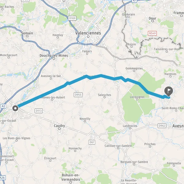 Au rond-point, prendre la 2ème sortie sur D114 (Banlieue vers Ruesnes) et continuer sur 2,7 kilomètres