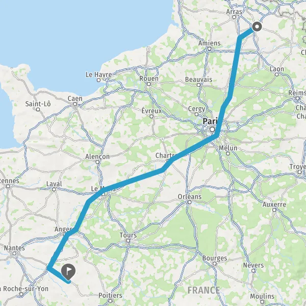 Prendre à droite et rejoindre A11 E50. Continuer sur 147 kilomètres