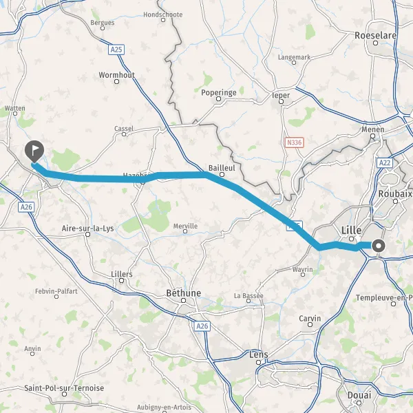 Au rond-point, prendre la 3ème sortie sur D642 (Route d'Hazebrouck) et continuer sur 5,5 kilomètres