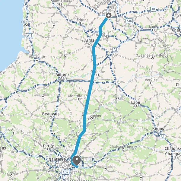 Continuer E17 (Autoroute du Nord) sur 173 kilomètres
