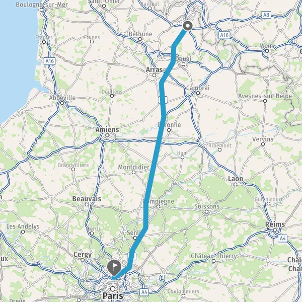 Continuer E17 (Autoroute du Nord) sur 161 kilomètres