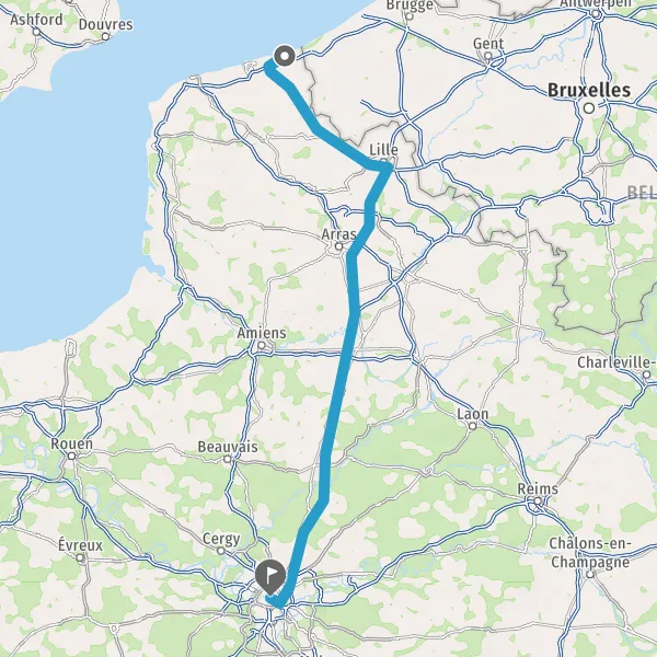 Continuer E17 (Autoroute du Nord) sur 182 kilomètres