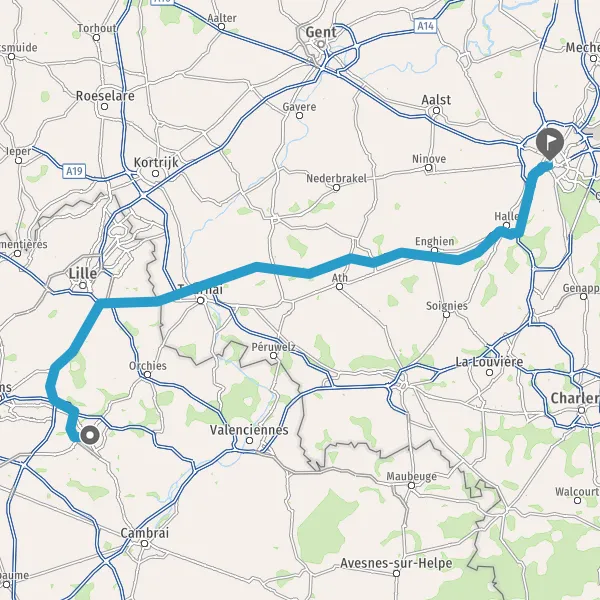Prendre à droite et rejoindre A22 E17 E42. Continuer sur 1,9 kilomètre