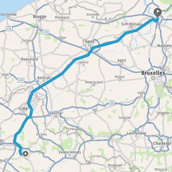Prendre à gauche et rejoindre A22 E17. Continuer sur 12 kilomètres