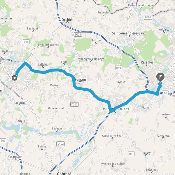 Au rond-point, prendre la 4ème sortie sur Rue de Famars et continuer sur 800 mètres