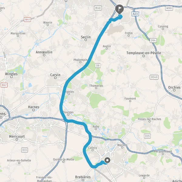 Au rond-point, prendre la 3ème sortie sur D643 (Rue d'Esquerchin) et continuer sur 300 mètres