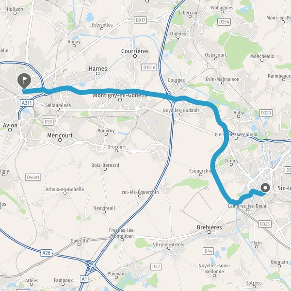 Prendre à droite et rejoindre A21. Continuer sur 180 mètres