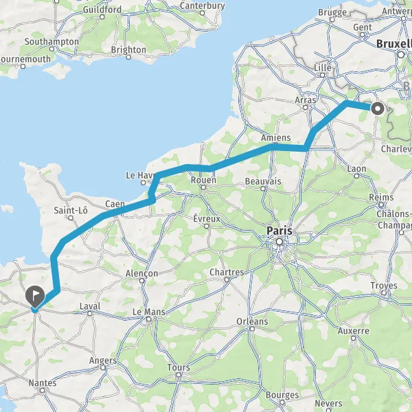 Prendre à droite et rejoindre A84 E401. Continuer sur 163 kilomètres