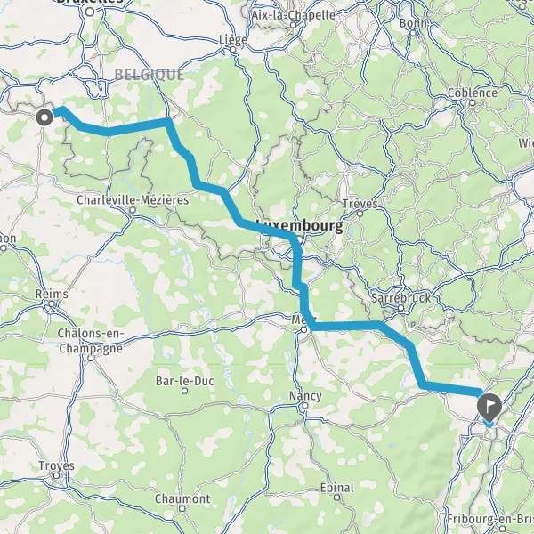 Prendre à droite et rejoindre A4 E411. Continuer sur 107 kilomètres