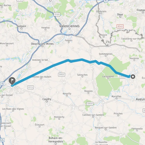 Au rond-point, prendre la 3ème sortie sur D630 (Avenue de Valenciennes) et continuer sur 1,1 kilomètre