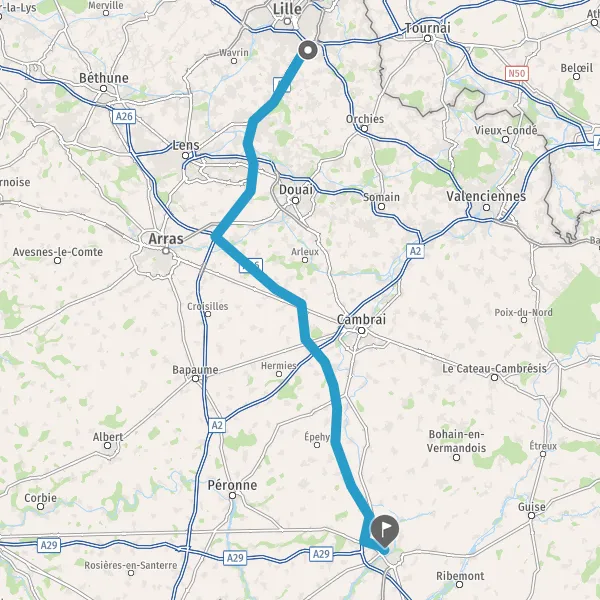 Prendre à droite et rejoindre A26 E17. Continuer sur 60 kilomètres