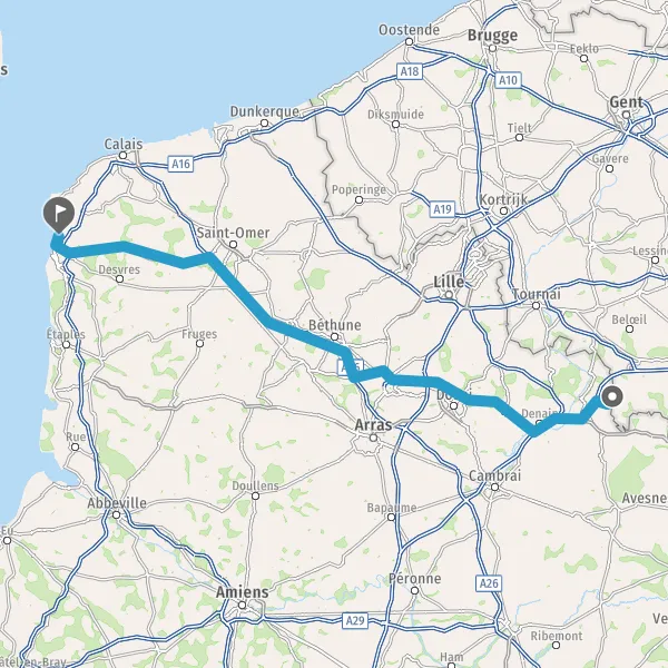 Prendre à droite et rejoindre A16 A16 E402. Continuer sur 2,5 kilomètres