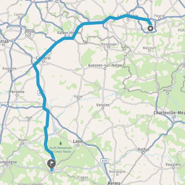 Prendre à gauche et rejoindre A26 E17. Continuer sur 42 kilomètres