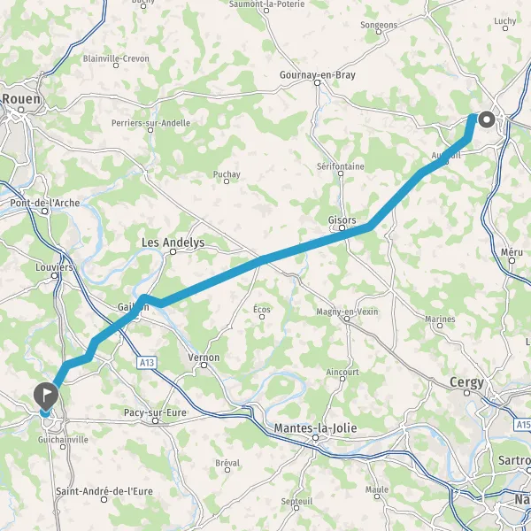 Au rond-point, prendre la 3ème sortie sur D316 (Route des Andelys) et continuer sur 1,3 kilomètre