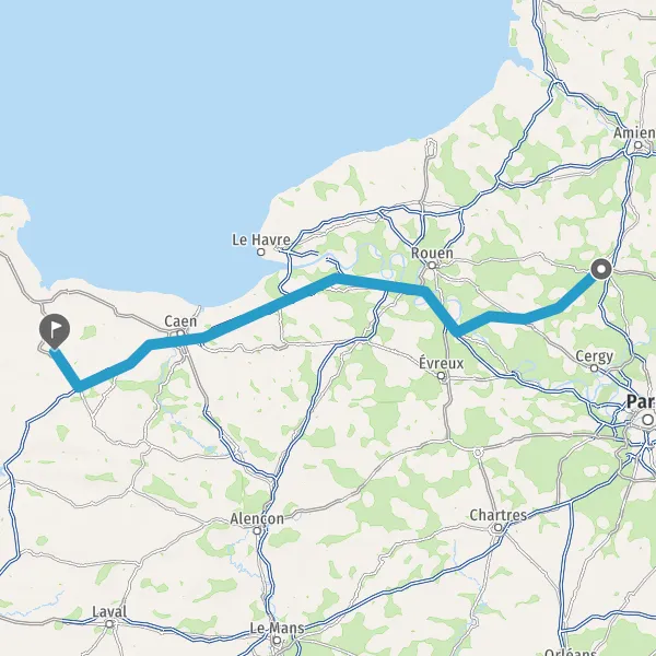 Prendre à droite et rejoindre A84 E401. Continuer sur 45 kilomètres
