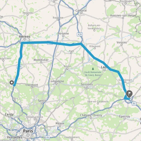 Prendre à droite et rejoindre A26. Continuer sur 93 kilomètres