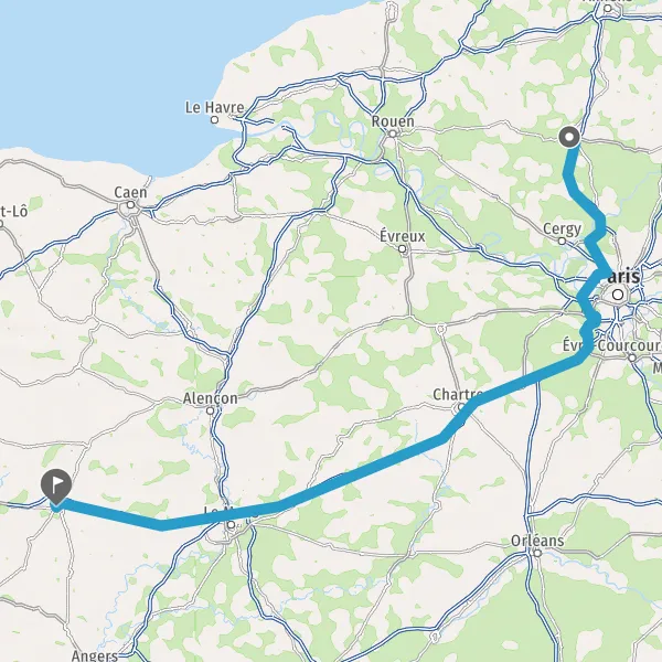 Prendre à droite et rejoindre A11 E50. Continuer sur 147 kilomètres