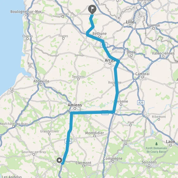 Prendre à gauche et rejoindre A26 E15. Continuer sur 45 kilomètres