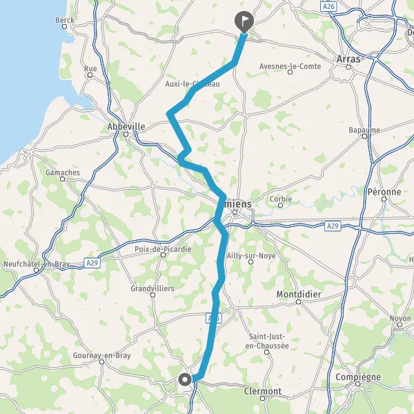 Tourner à droite sur D941 (Route d'Auxi) et continuer sur 23 kilomètres