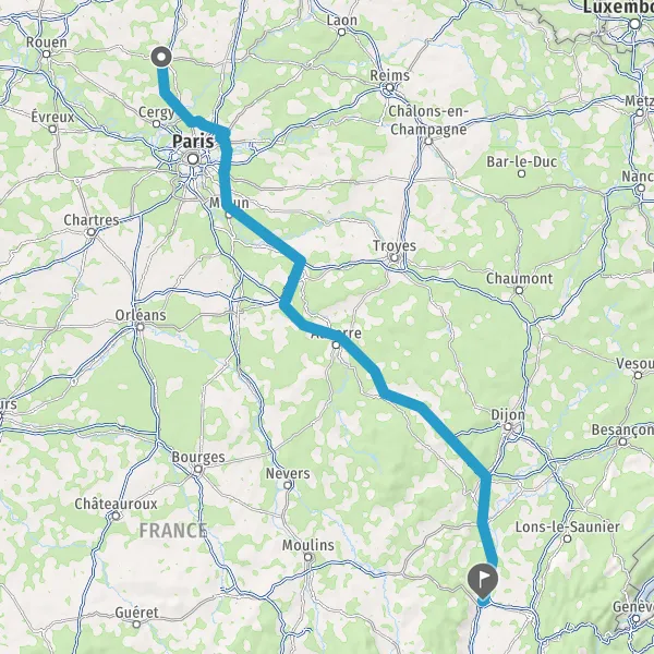 Prendre à gauche et rejoindre A6. Continuer sur 292 kilomètres