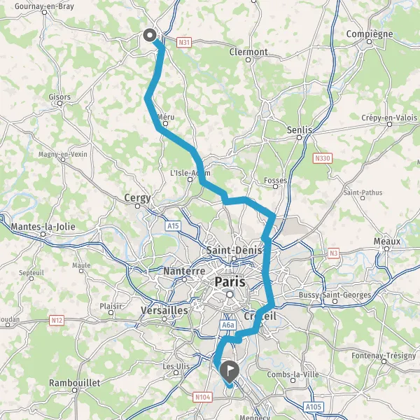 Continuer N104 (La Francilienne) sur 8,1 kilomètres