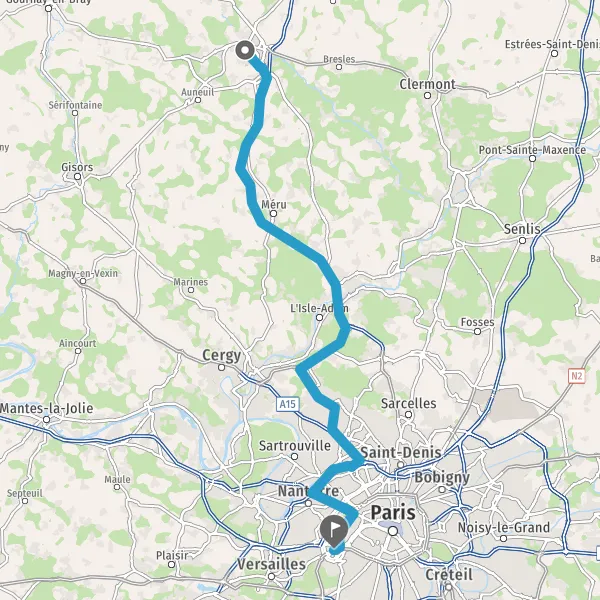 Prendre à gauche et rejoindre A15. Continuer sur 5,7 kilomètres