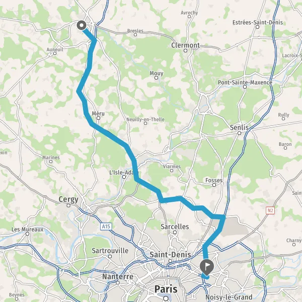 Prendre à droite et rejoindre La Francilienne. Continuer sur 350 mètres