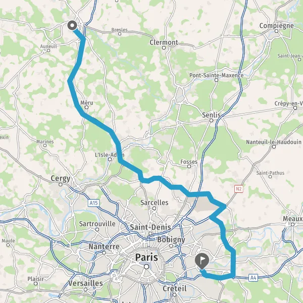Prendre à droite et rejoindre La Francilienne. Continuer sur 350 mètres