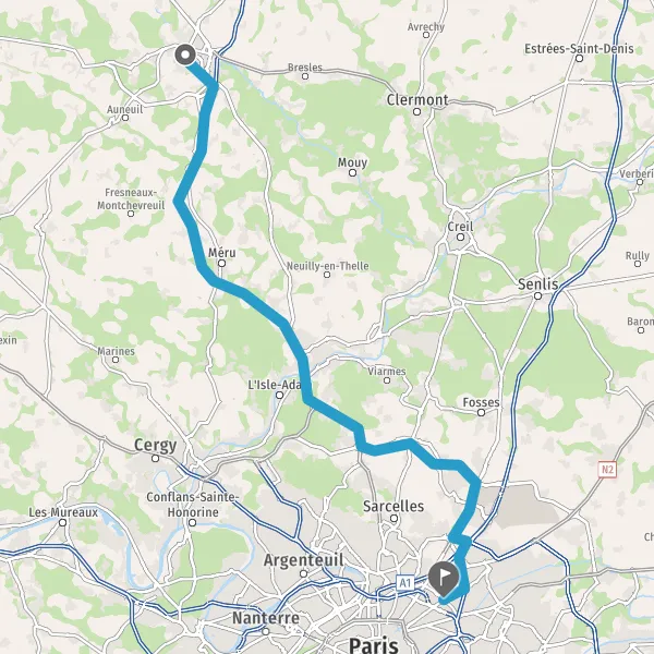 Prendre à droite et rejoindre La Francilienne. Continuer sur 350 mètres
