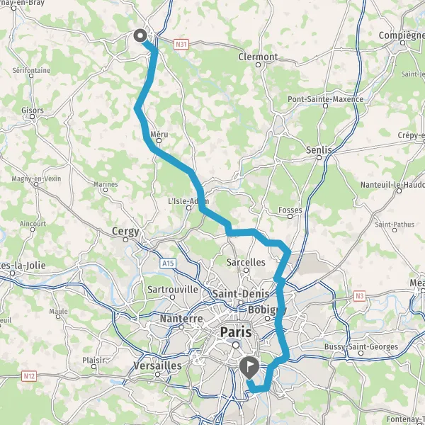 Prendre à droite et rejoindre La Francilienne. Continuer sur 350 mètres