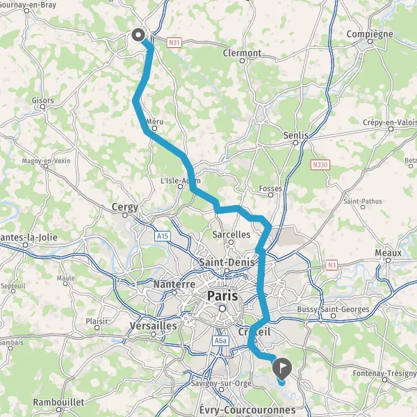 Prendre à droite et rejoindre La Francilienne. Continuer sur 350 mètres