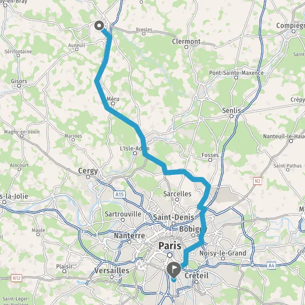 Prendre à droite et rejoindre La Francilienne. Continuer sur 350 mètres