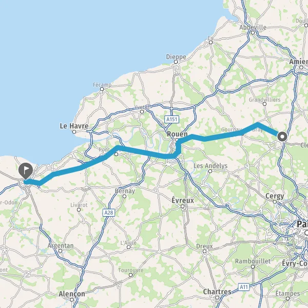 Prendre à droite et rejoindre N28 E402 D6028 (Voie Est de Rouen). Continuer sur 3,2 kilomètres