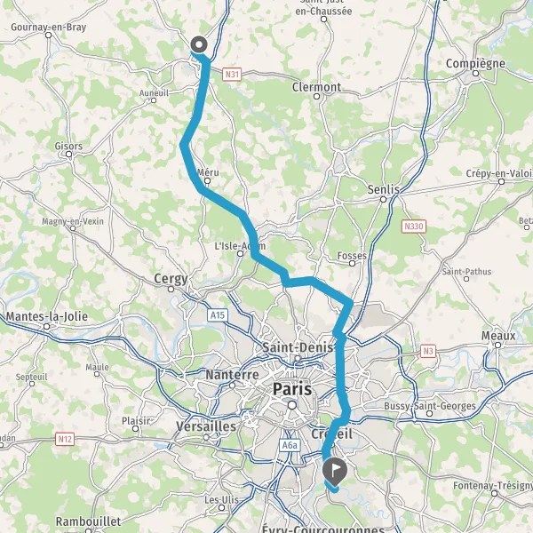 Prendre à droite et rejoindre La Francilienne. Continuer sur 350 mètres