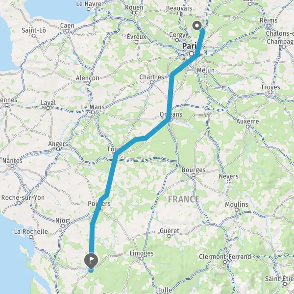 Continuer E5 (L'Aquitaine) sur 284 kilomètres