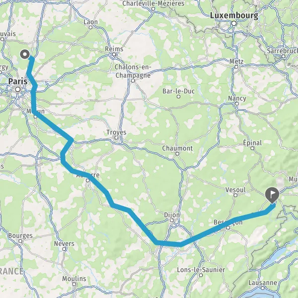 Prendre à droite et rejoindre A36. Continuer sur 165 kilomètres
