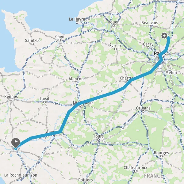 Prendre à droite et rejoindre A11 E50. Continuer sur 147 kilomètres
