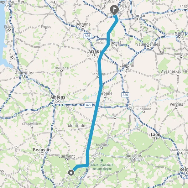 Prendre à droite et rejoindre D1016 (Route Nationale de Paris à Dunkerque). Continuer sur 2,6 kilomètres
