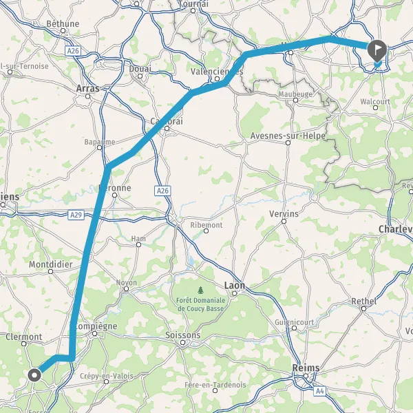 Prendre à droite et rejoindre D1016 (Route Nationale de Paris à Dunkerque). Continuer sur 2,6 kilomètres