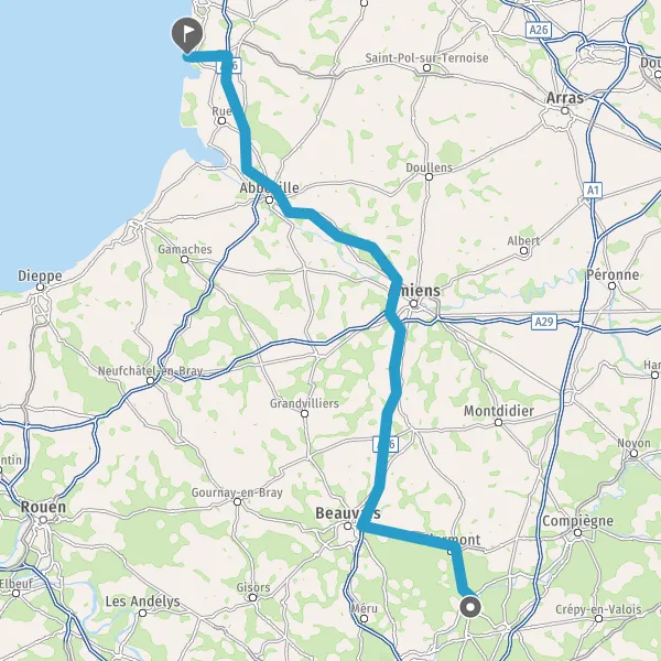 Prendre à droite et rejoindre D1016 (Route Nationale de Paris à Dunkerque). Continuer sur 3,2 kilomètres