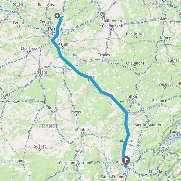 Prendre à gauche et rejoindre A6. Continuer sur 292 kilomètres