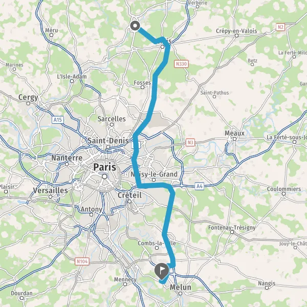 Prendre à droite et rejoindre N1104 (Contournement Est De Roissy). Continuer sur 8,3 kilomètres