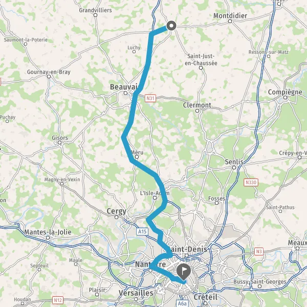Prendre à droite et rejoindre La Francilienne. Continuer sur 350 mètres