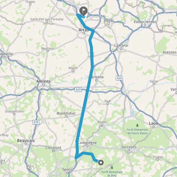 Prendre à gauche et rejoindre A26 E15. Continuer sur 22 kilomètres