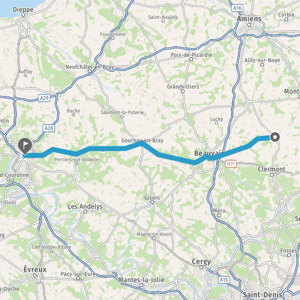 Tourner à gauche sur D938 (Rue de Beauvais) et continuer sur 15 kilomètres