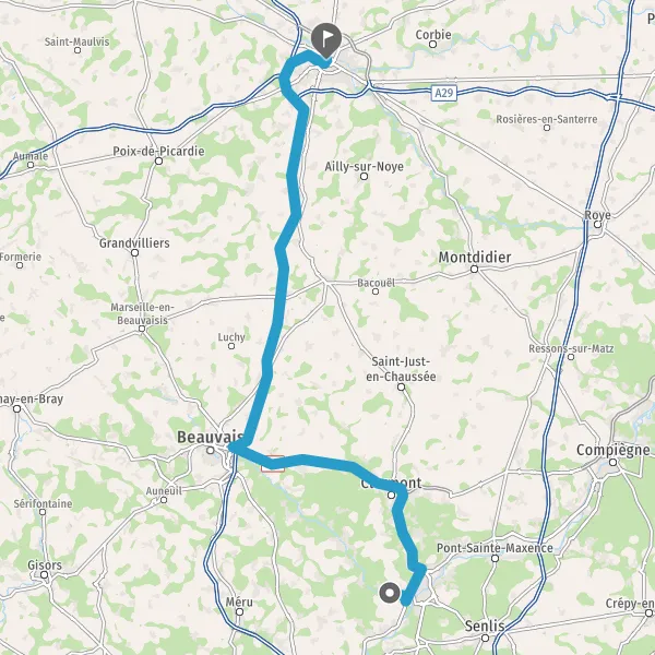 Prendre à droite et rejoindre D1016 (Route Nationale de Paris à Lille). Continuer sur 12 kilomètres