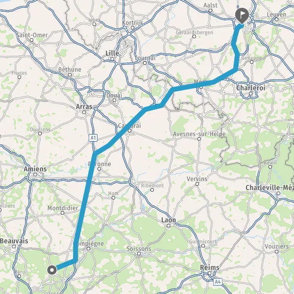 Prendre à droite et rejoindre D1016 (Route Nationale de Paris à Lille). Continuer sur 850 mètres