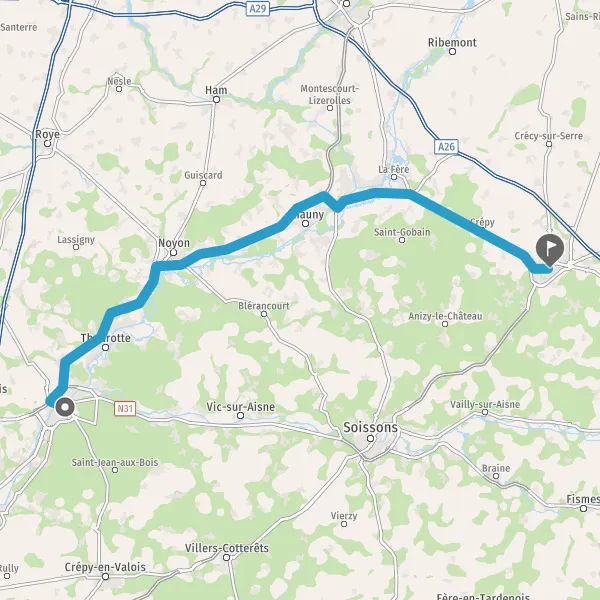 Prendre à droite et rejoindre D1032. Continuer sur 22 kilomètres