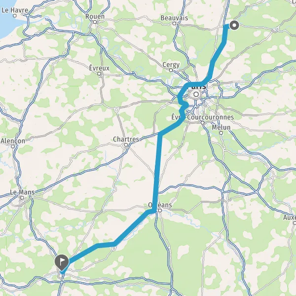 Prendre à droite et rejoindre A10. Continuer sur 34 kilomètres
