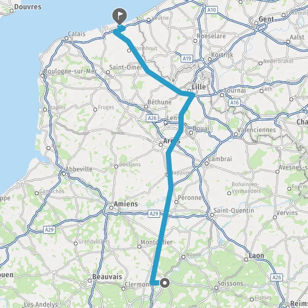 Prendre à droite et rejoindre A16 E40. Continuer sur 5,6 kilomètres